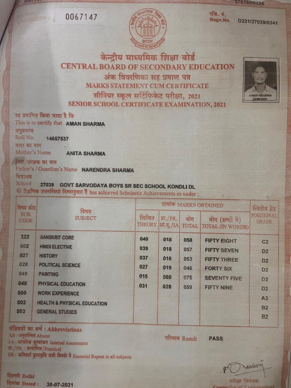 | Exam | Full Marks | Pass Marks | Marks Obtained |
