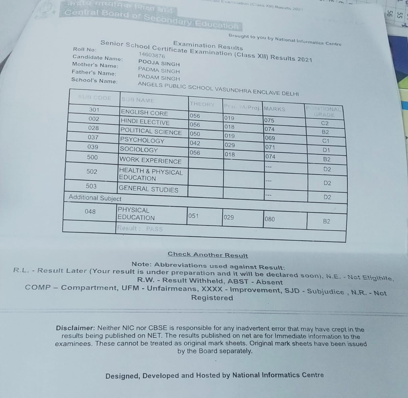 | Exam | Full Marks | Pass Marks | Marks Obtained |