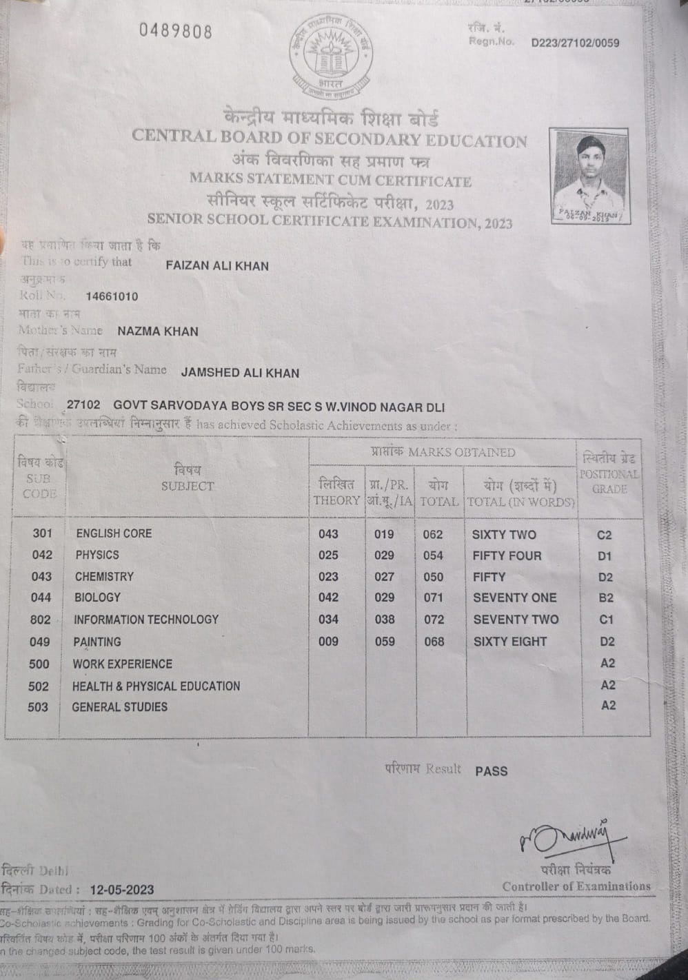 | Exam | Full Marks | Pass Marks | Marks Obtained |