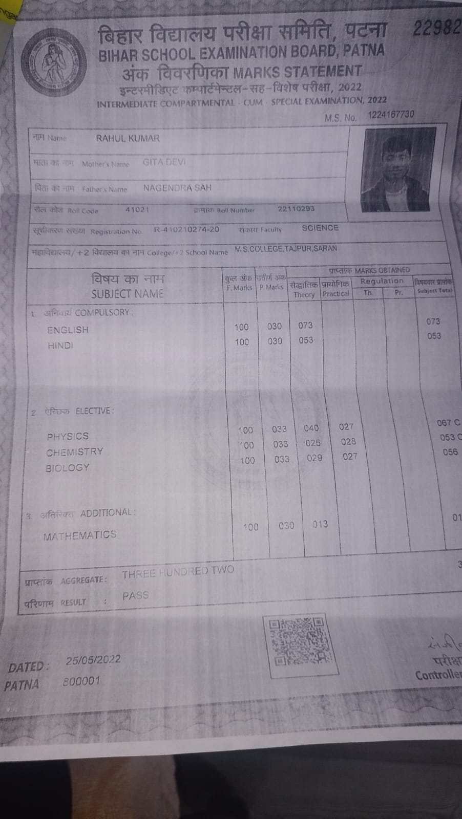 | Exam | Full Marks | Pass Marks | Marks Obtained |