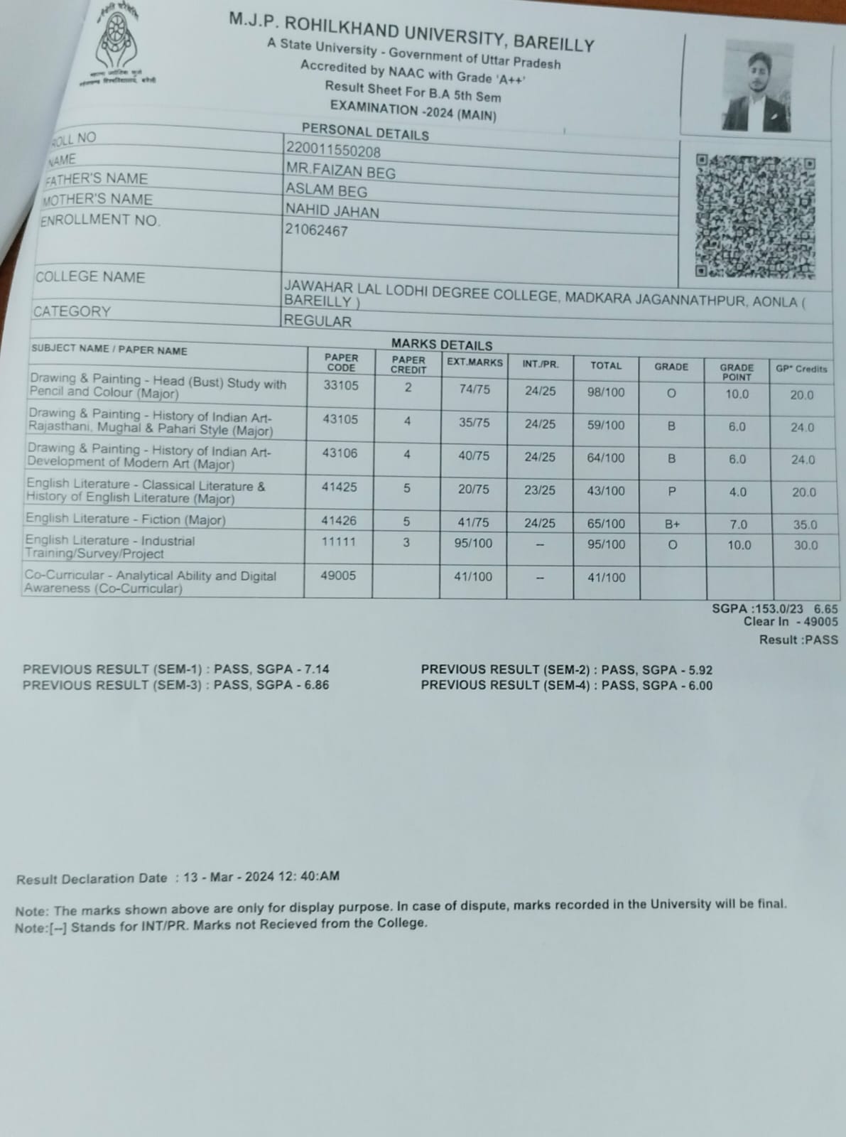 | Exam | Full Marks | Pass Marks | Marks Obtained |