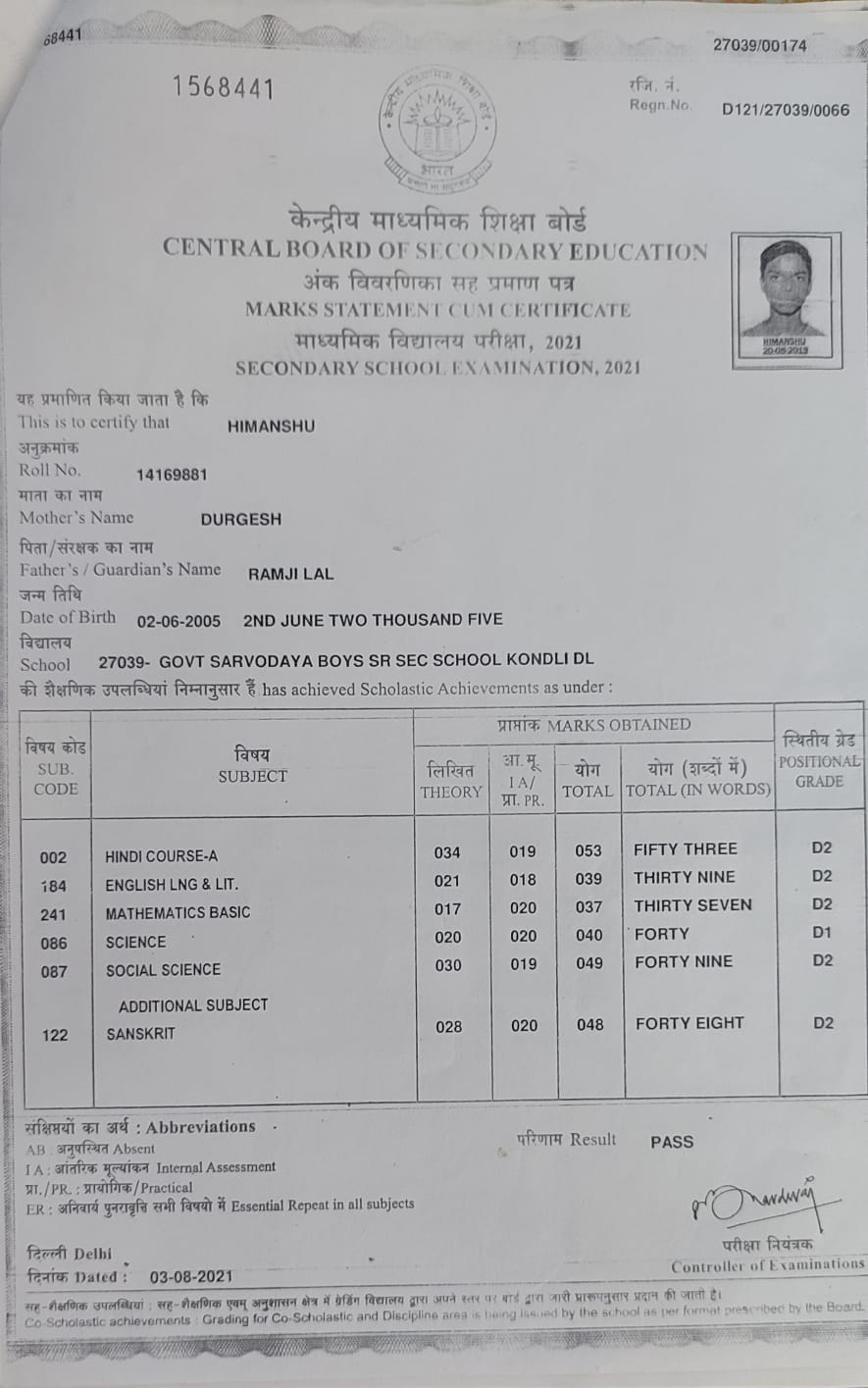 | Exam | Full Marks | Pass Marks | Marks Obtained |
