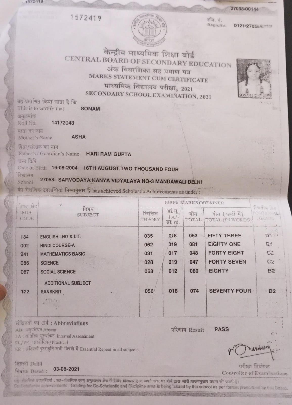 | Exam | Full Marks | Pass Marks | Marks Obtained |