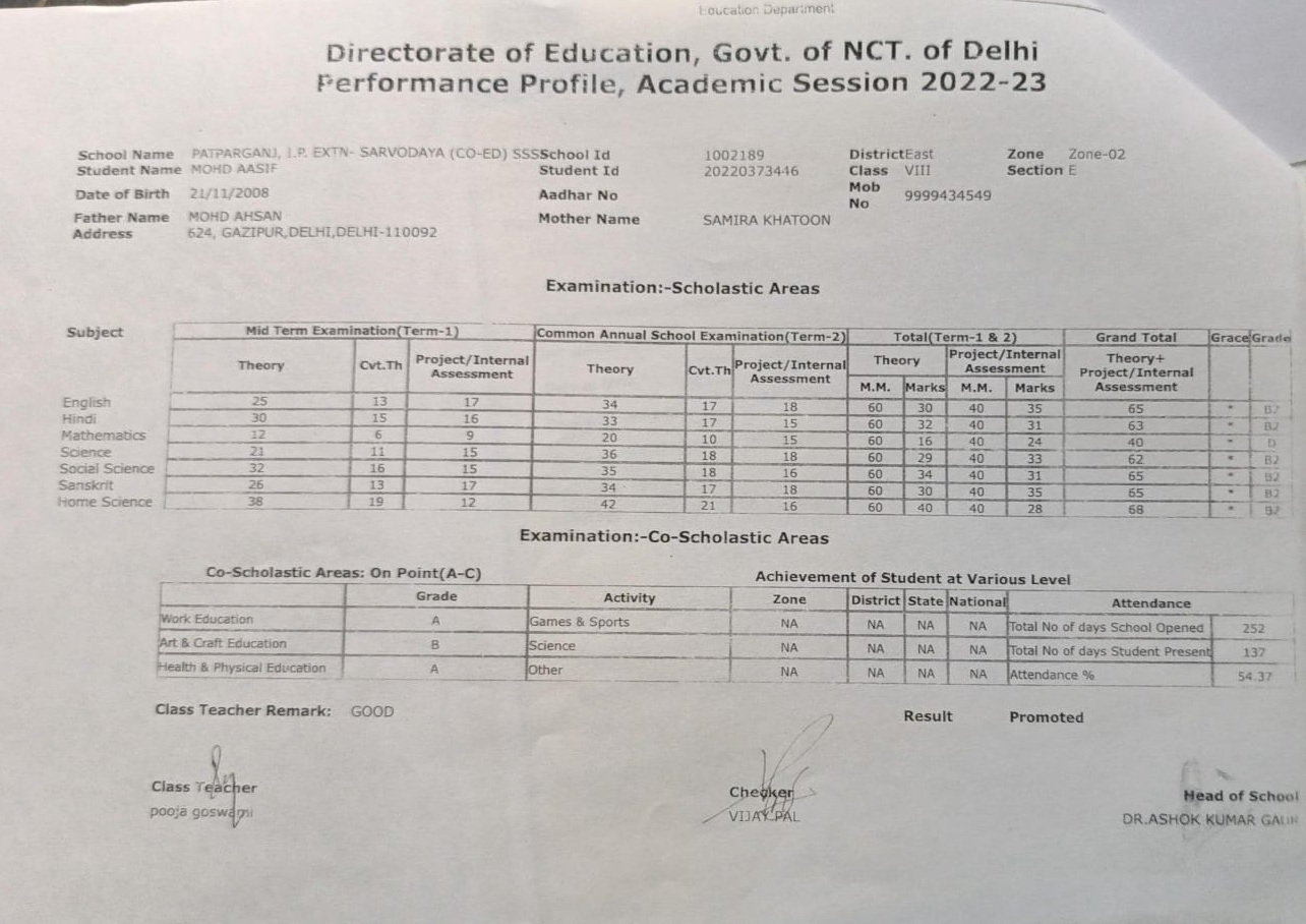 | Exam | Full Marks | Pass Marks | Marks Obtained |