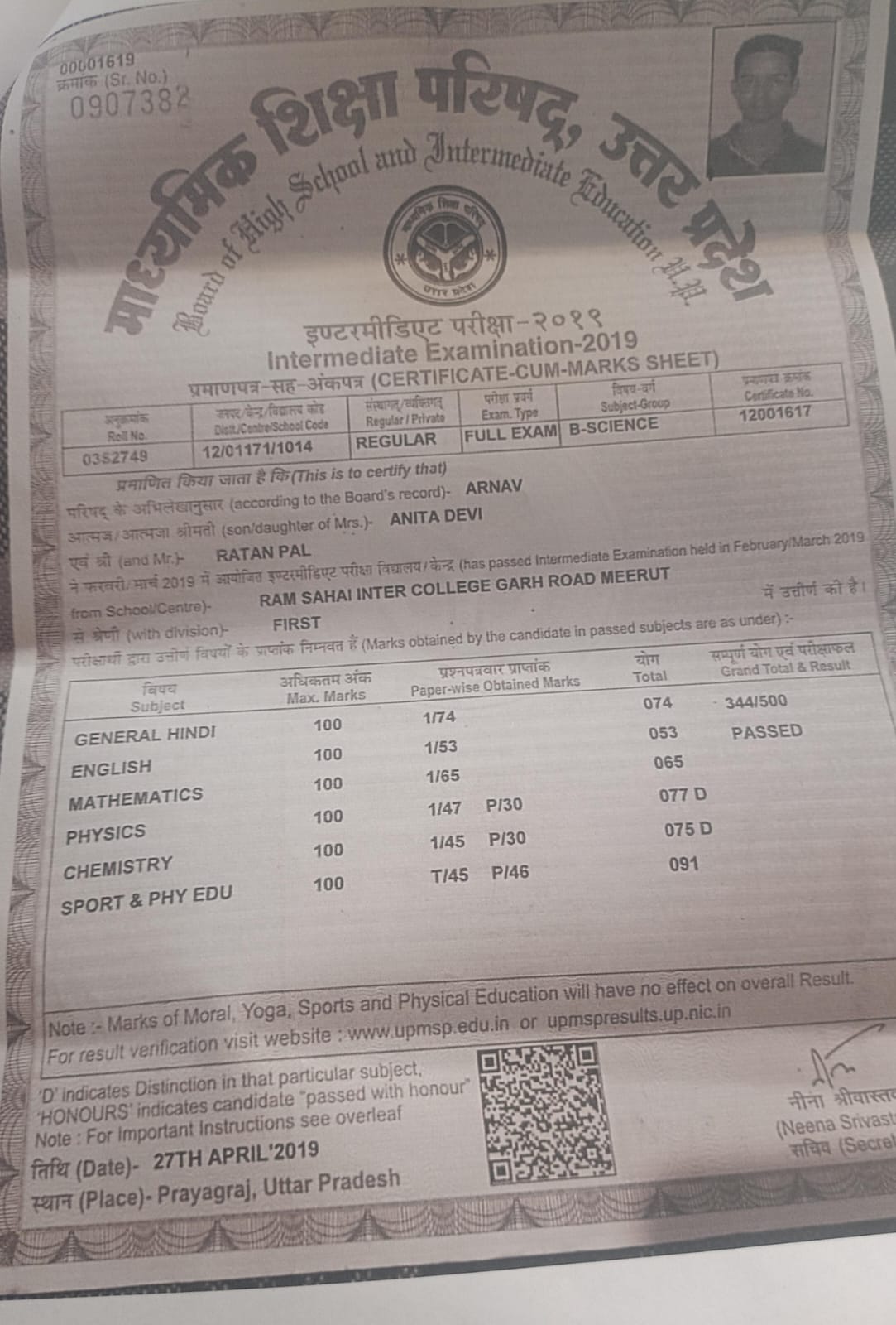 | Exam | Full Marks | Pass Marks | Marks Obtained |