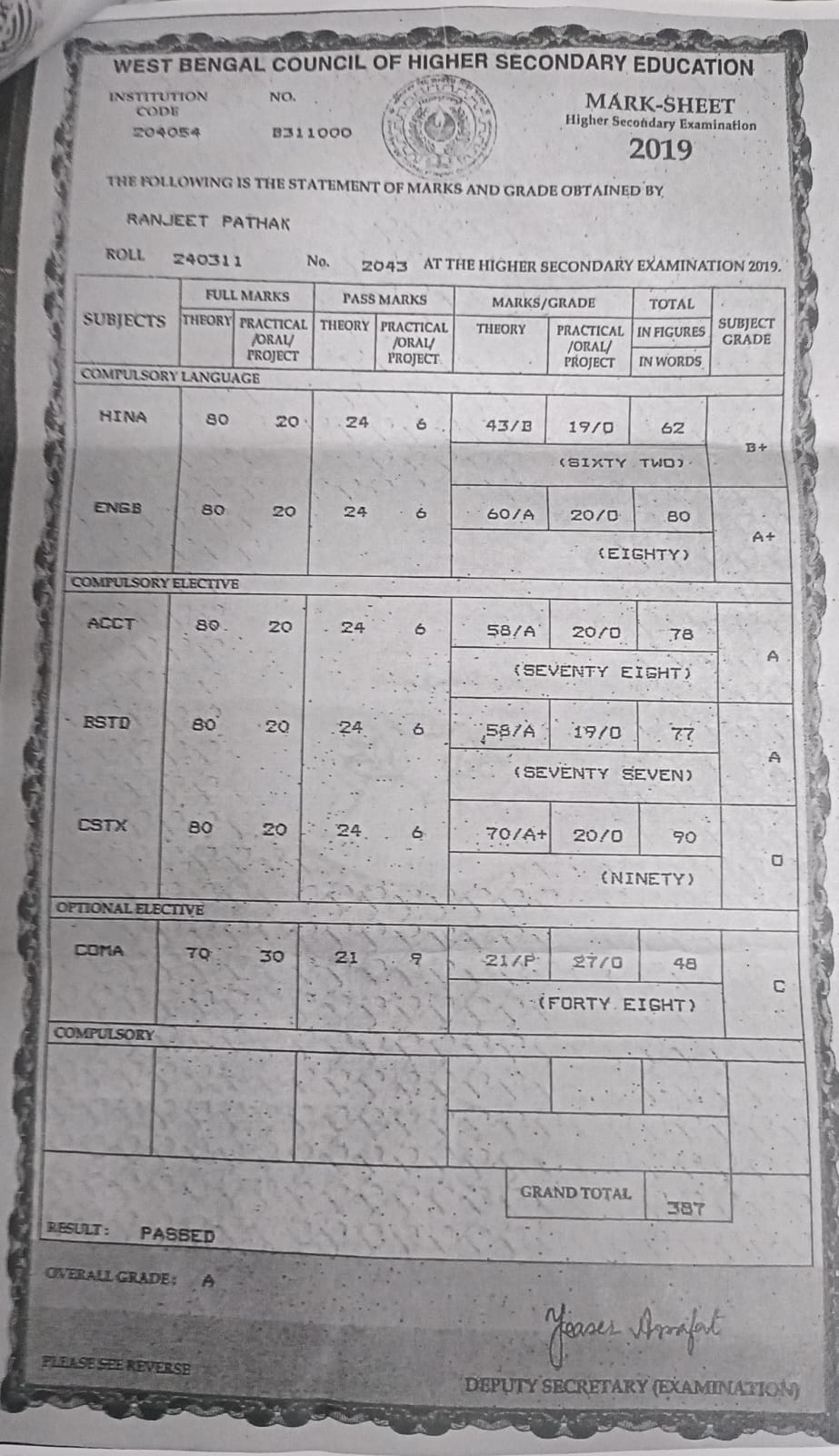 | Exam | Full Marks | Pass Marks | Marks Obtained |