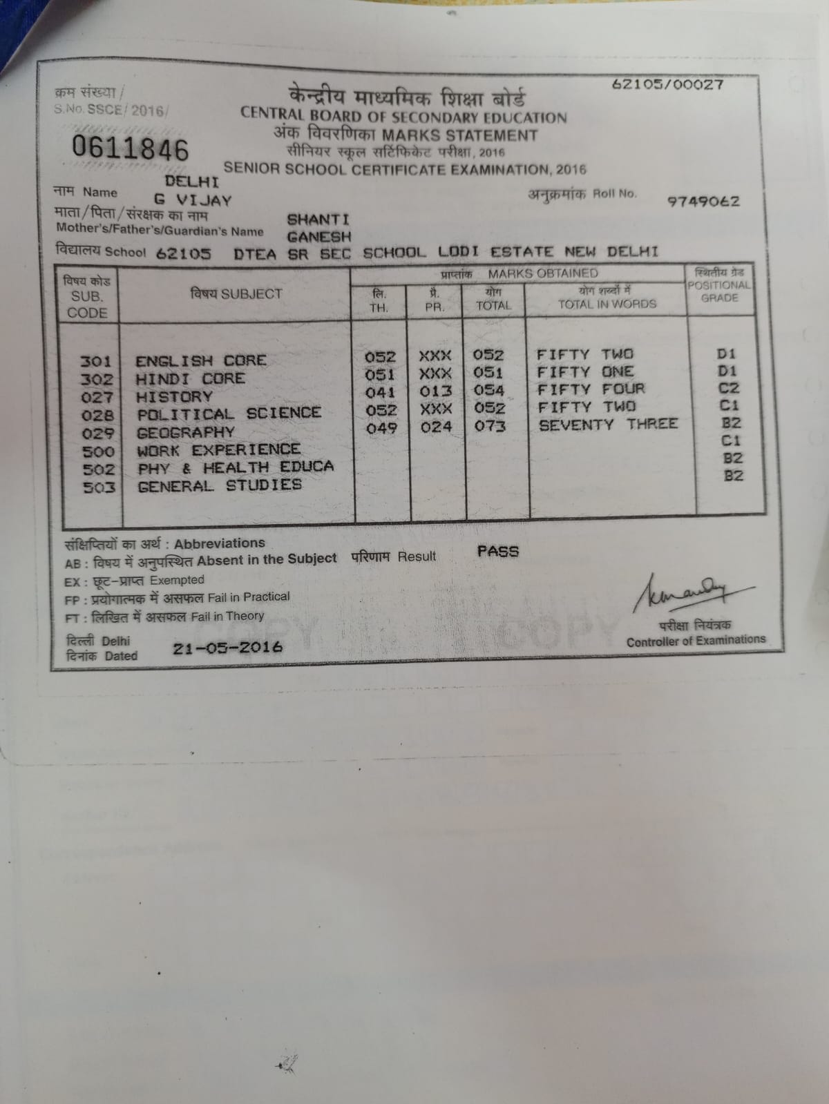 | Exam | Full Marks | Pass Marks | Marks Obtained |