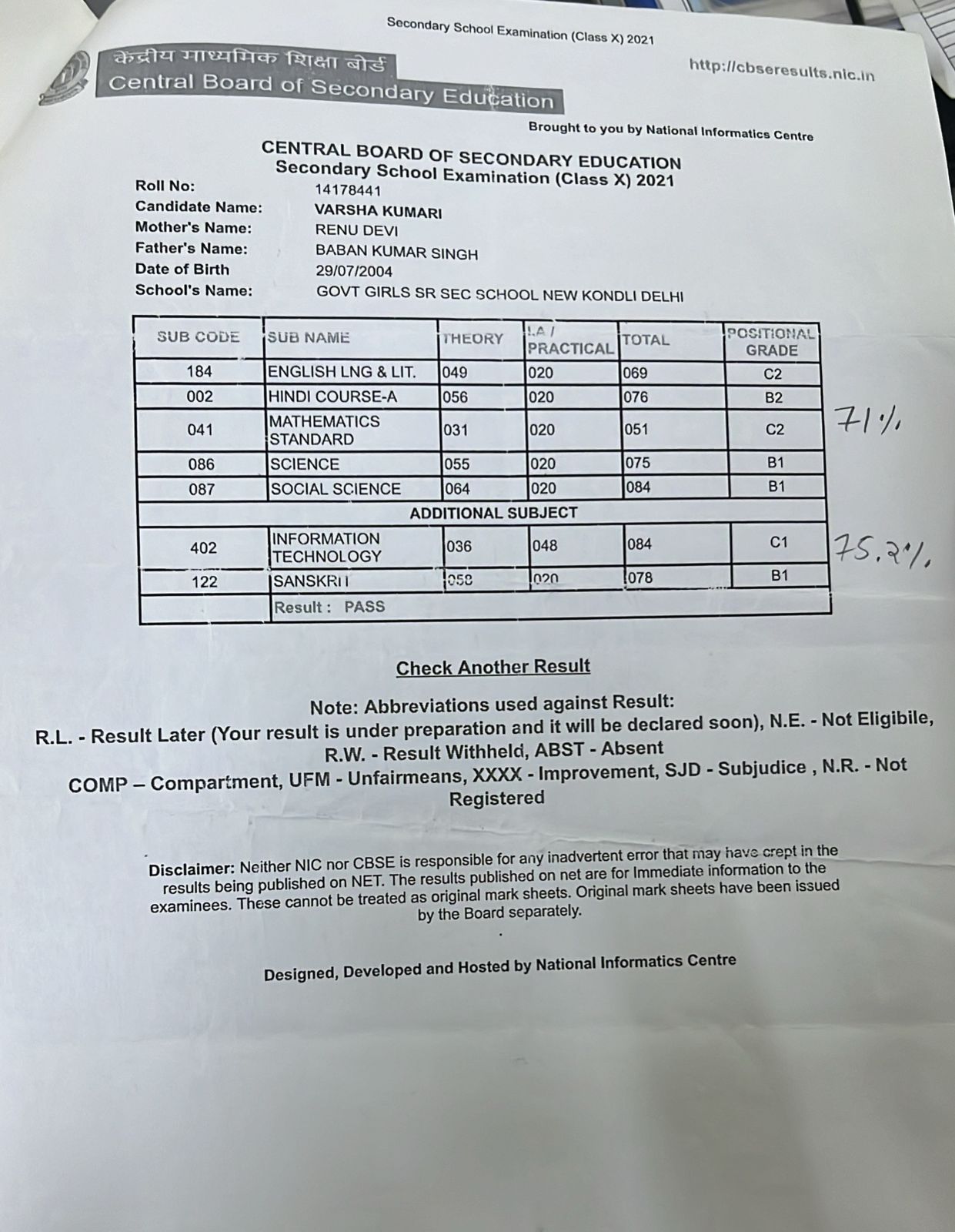 | Exam | Full Marks | Pass Marks | Marks Obtained |