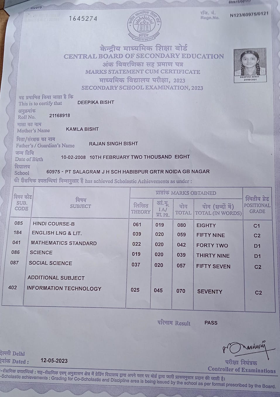 | Exam | Full Marks | Pass Marks | Marks Obtained |