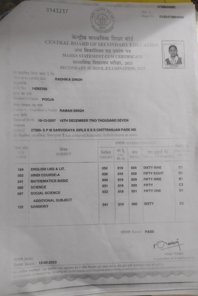 | Exam | Full Marks | Pass Marks | Marks Obtained |