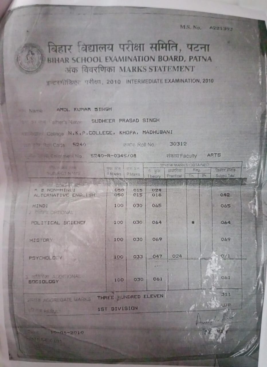 | Exam | Full Marks | Pass Marks | Marks Obtained |