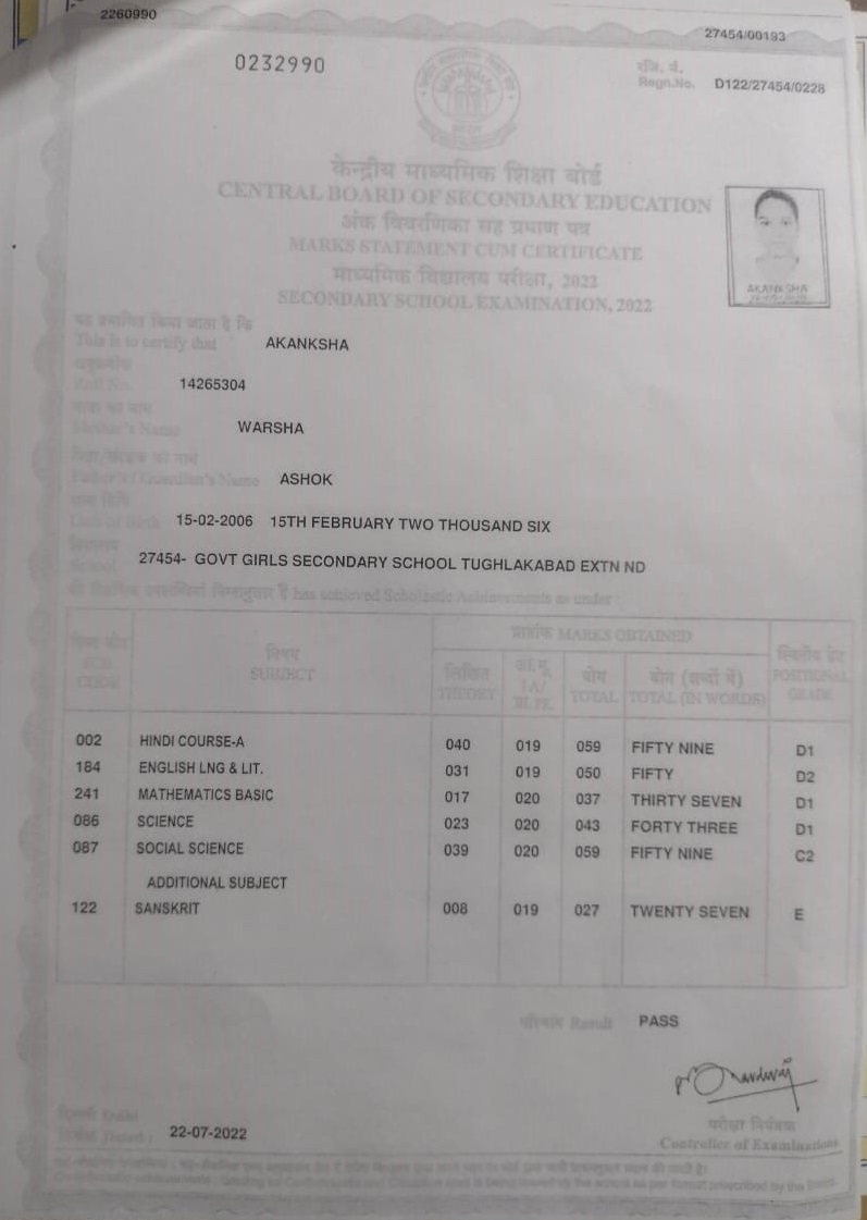 | Exam | Full Marks | Pass Marks | Marks Obtained |