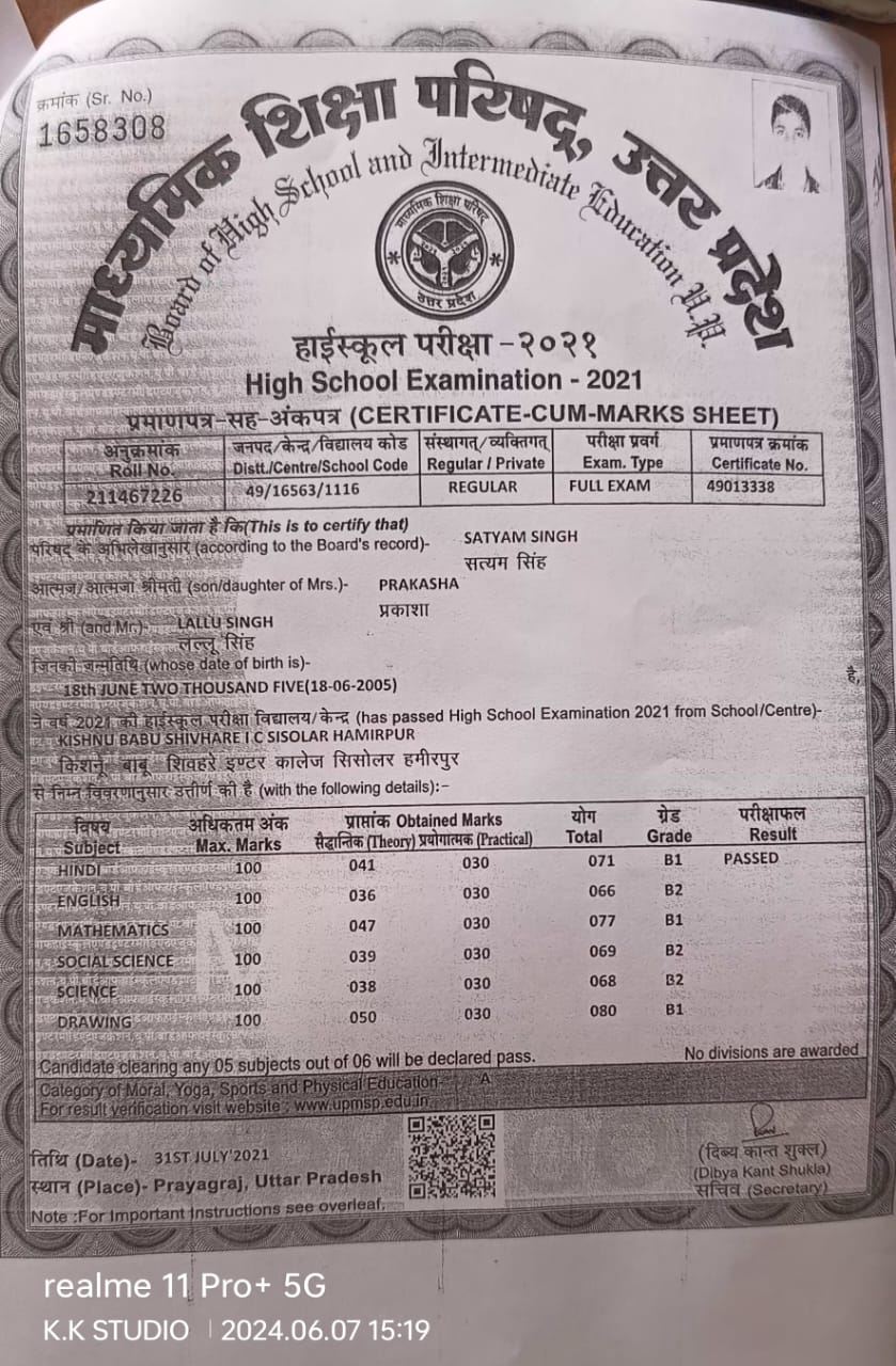 | Exam | Full Marks | Pass Marks | Marks Obtained |