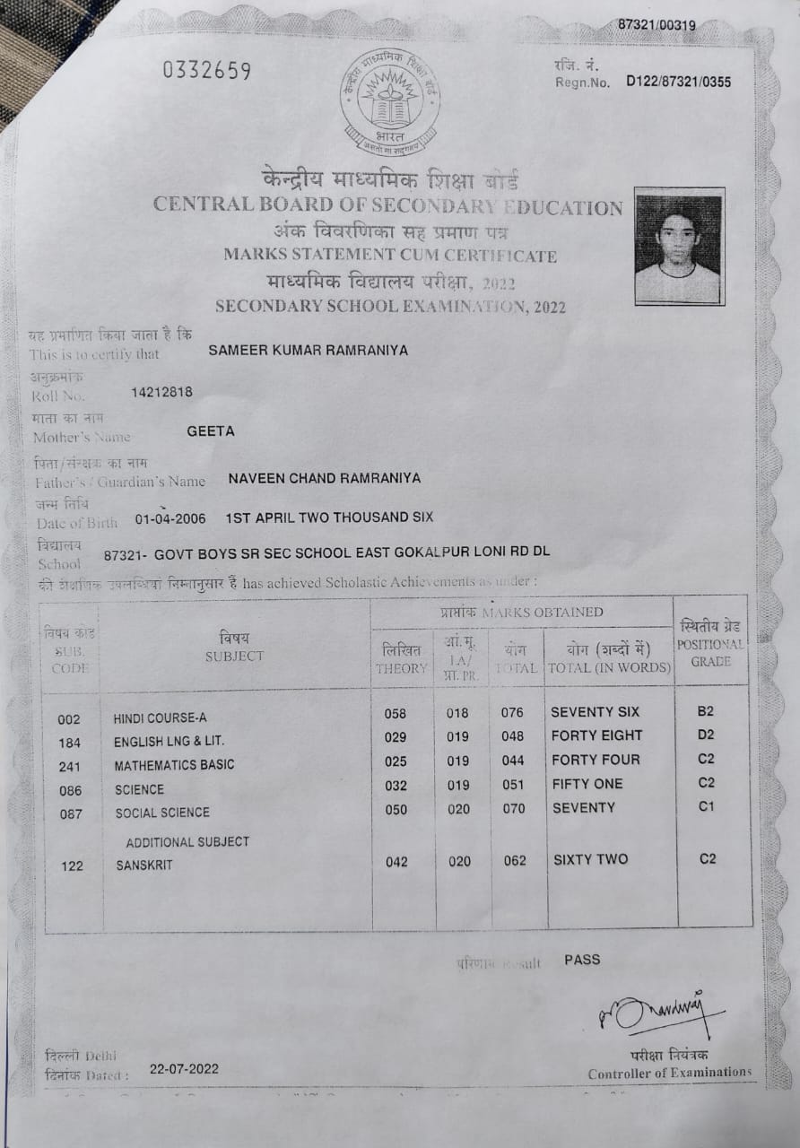 | Exam | Full Marks | Pass Marks | Marks Obtained |