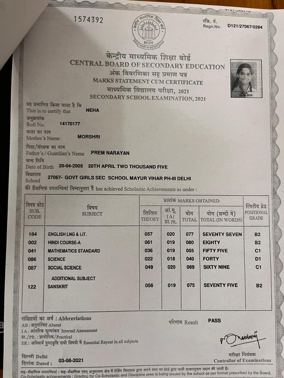 | Exam | Full Marks | Pass Marks | Marks Obtained |
