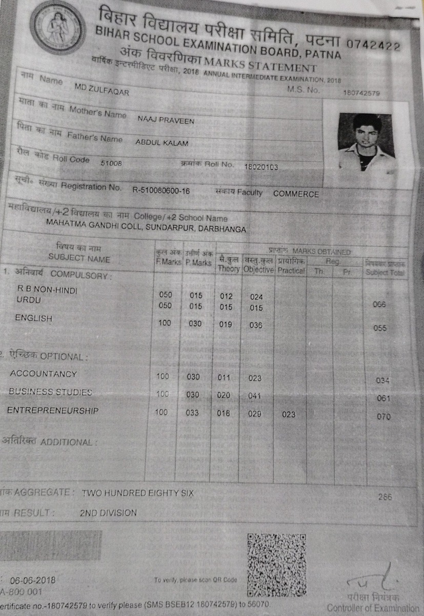 | Exam | Full Marks | Pass Marks | Marks Obtained |