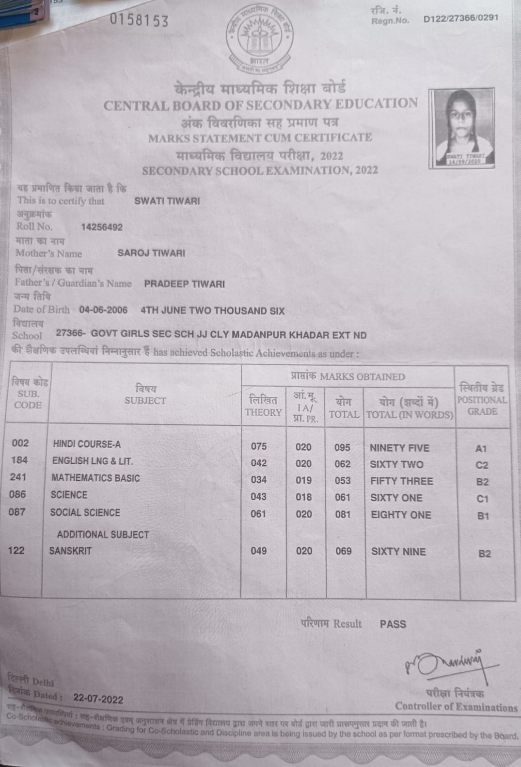 | Exam | Full Marks | Pass Marks | Marks Obtained |