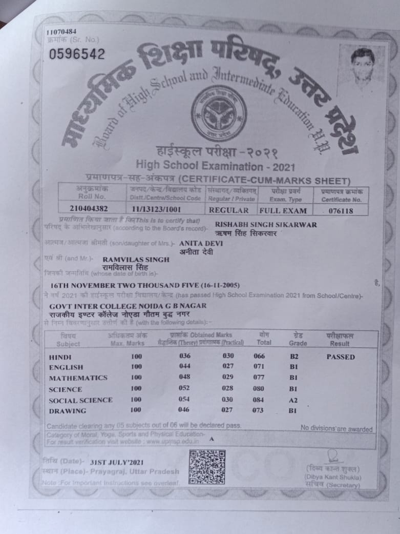 | Exam | Full Marks | Pass Marks | Marks Obtained |