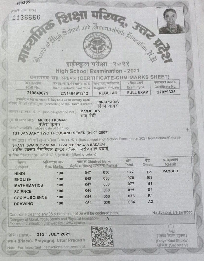| Exam | Full Marks | Pass Marks | Marks Obtained |