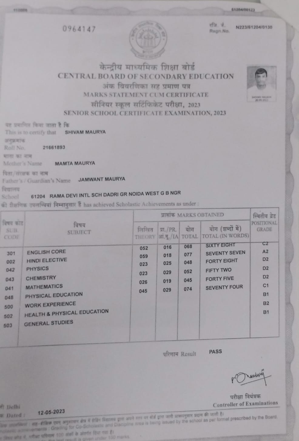 | Exam | Full Marks | Pass Marks | Marks Obtained |