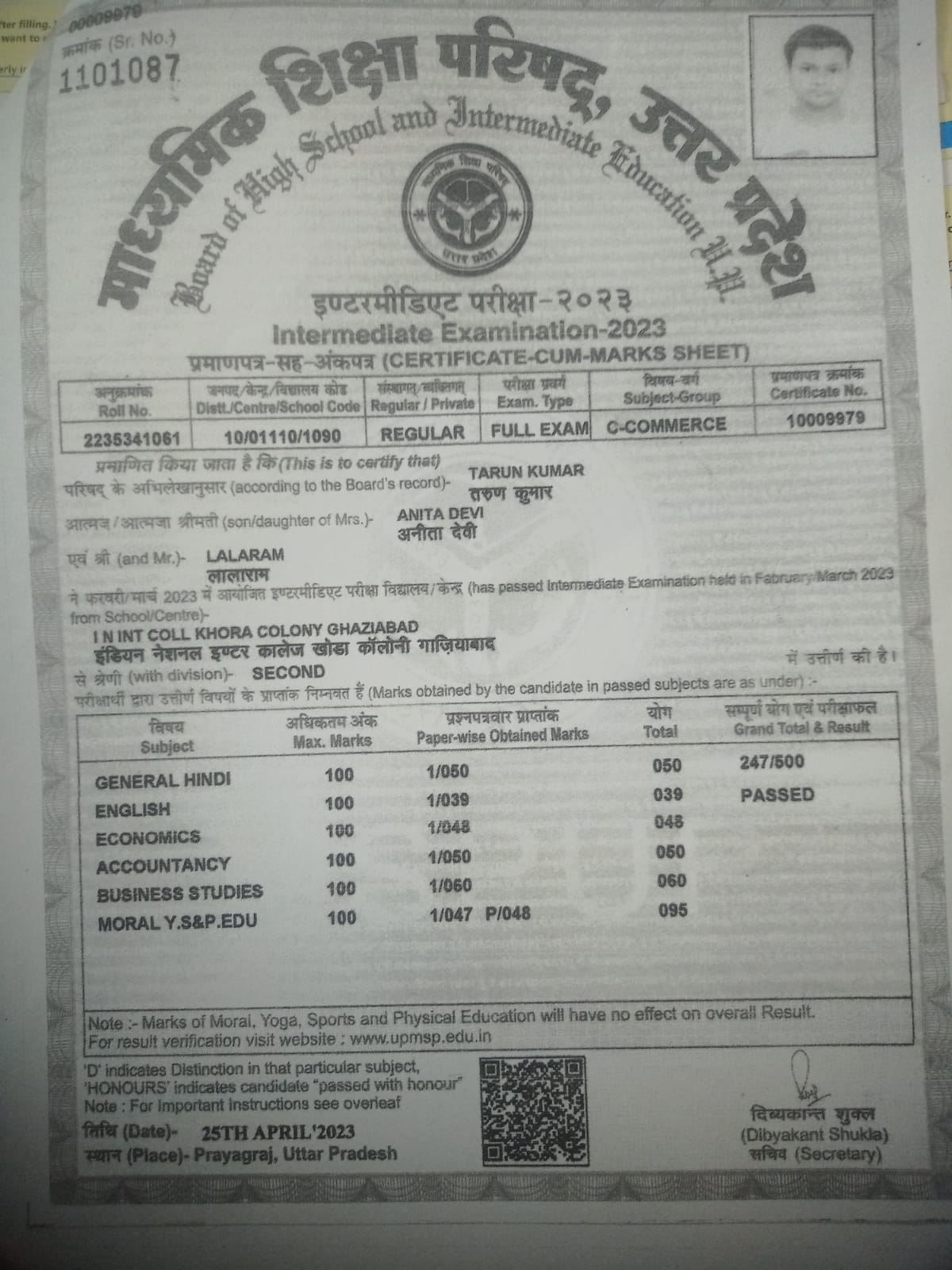 | Exam | Full Marks | Pass Marks | Marks Obtained |