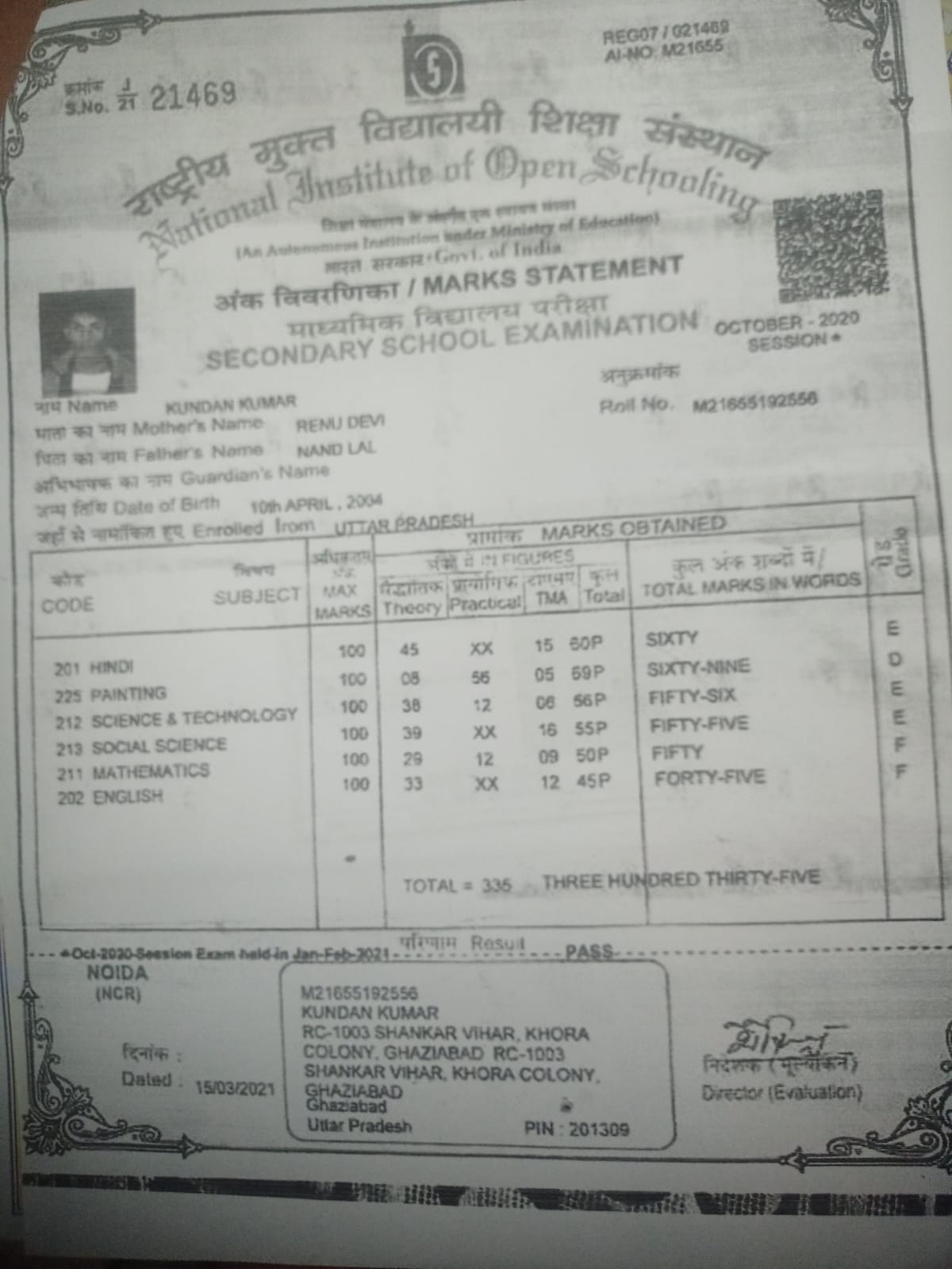 | Exam | Full Marks | Pass Marks | Marks Obtained |