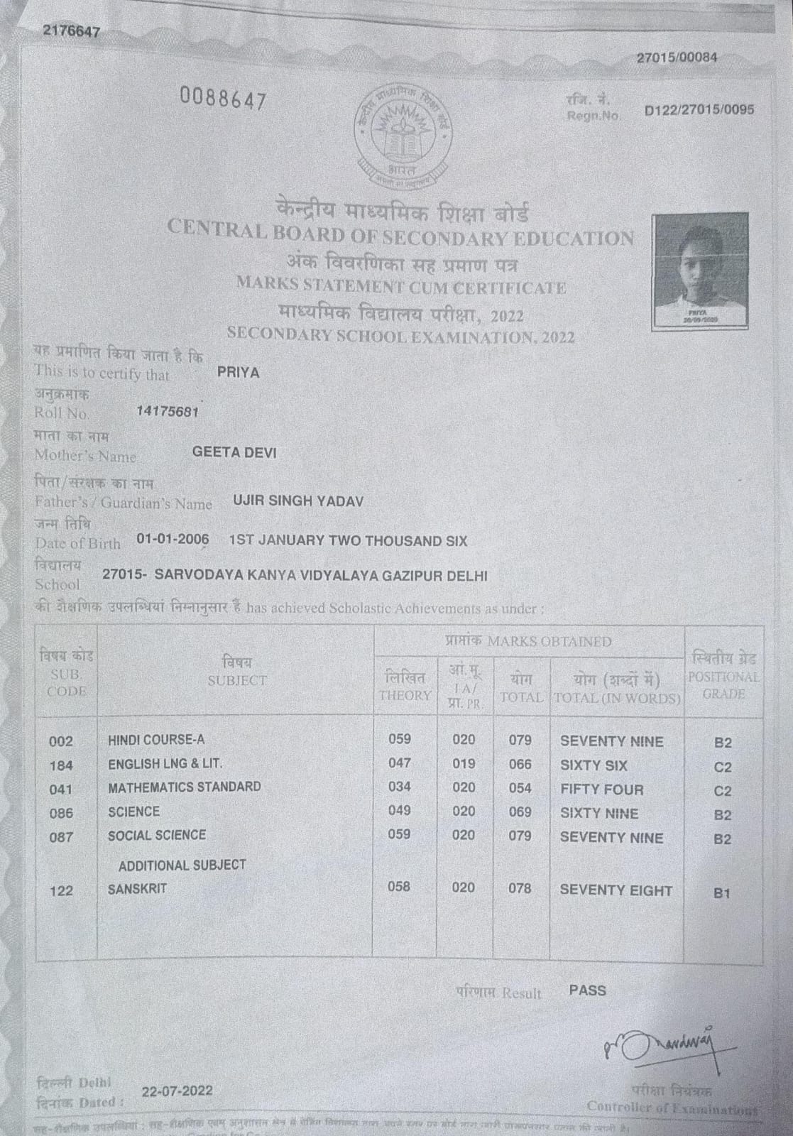 | Exam | Full Marks | Pass Marks | Marks Obtained |