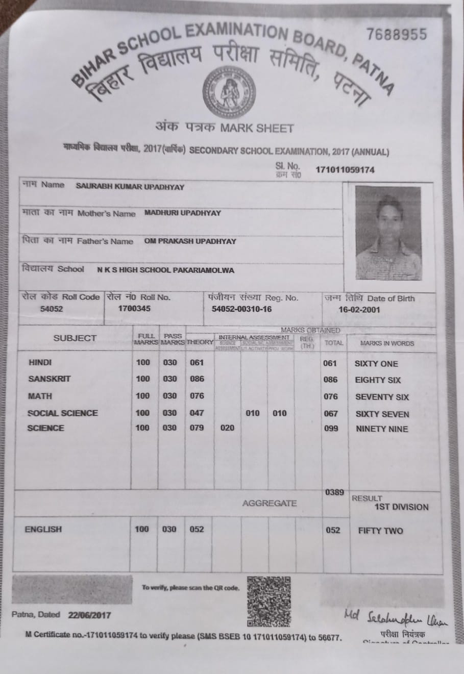 | Exam | Full Marks | Pass Marks | Marks Obtained |