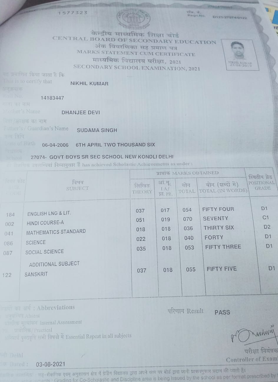 | Exam | Full Marks | Pass Marks | Marks Obtained |