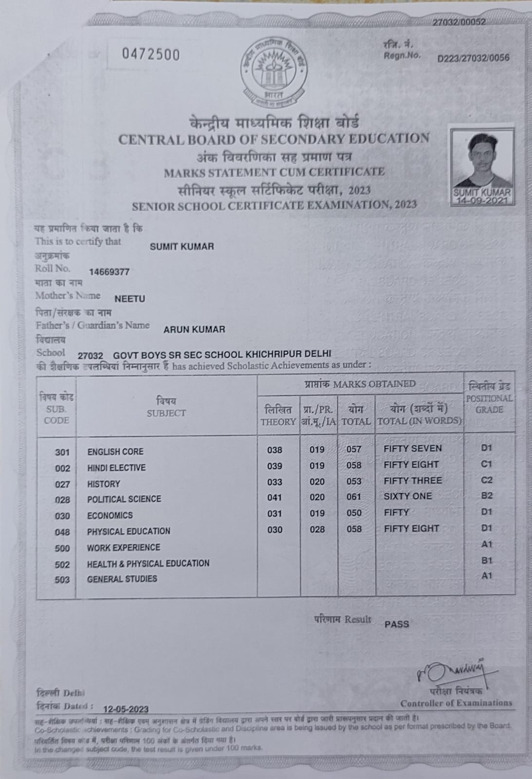 | Exam | Full Marks | Pass Marks | Marks Obtained |
