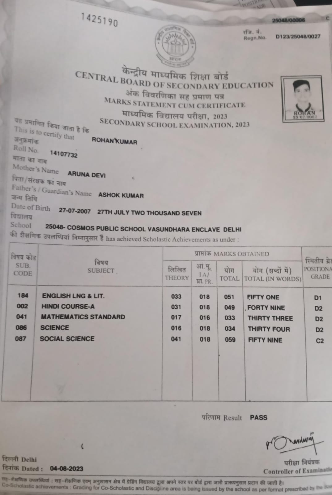 | Exam | Full Marks | Pass Marks | Marks Obtained |