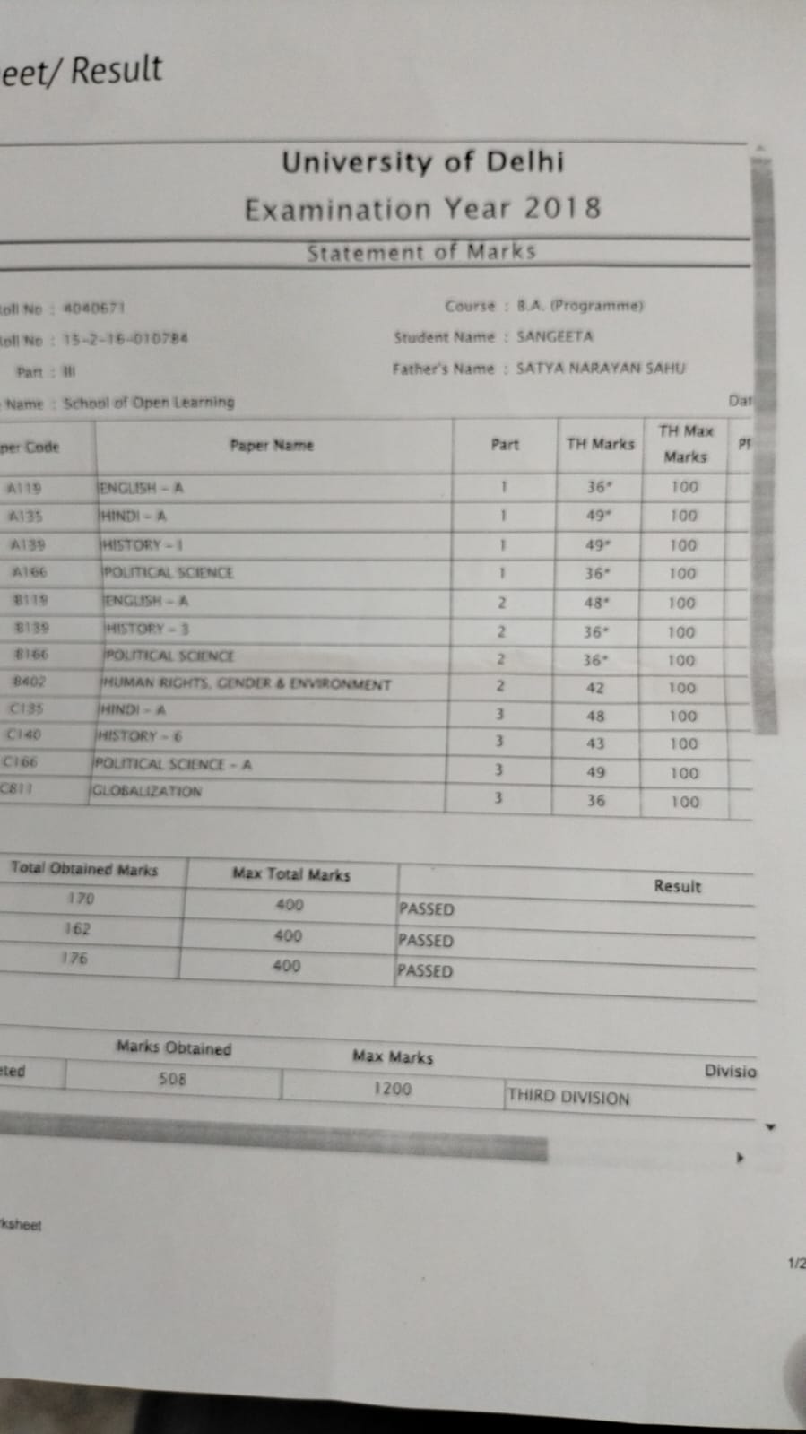 | Exam | Full Marks | Pass Marks | Marks Obtained |