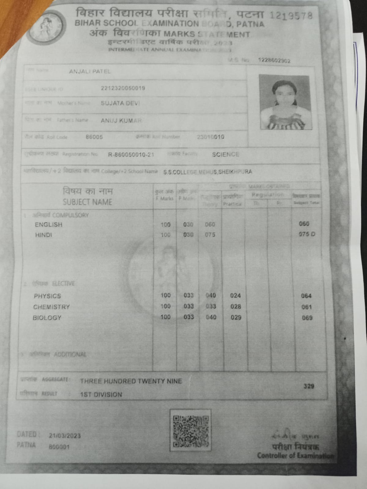 | Exam | Full Marks | Pass Marks | Marks Obtained |