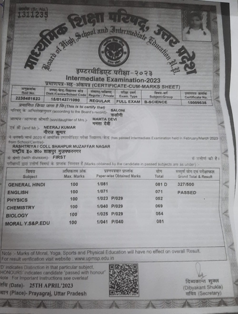 | Exam | Full Marks | Pass Marks | Marks Obtained |