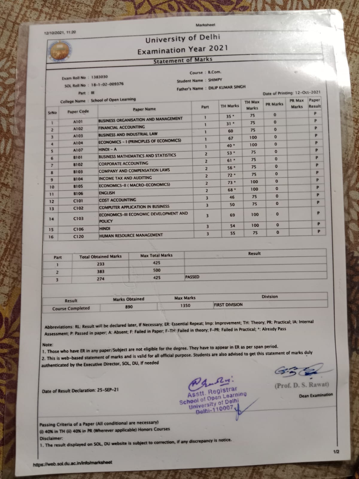 | Exam | Full Marks | Pass Marks | Marks Obtained |