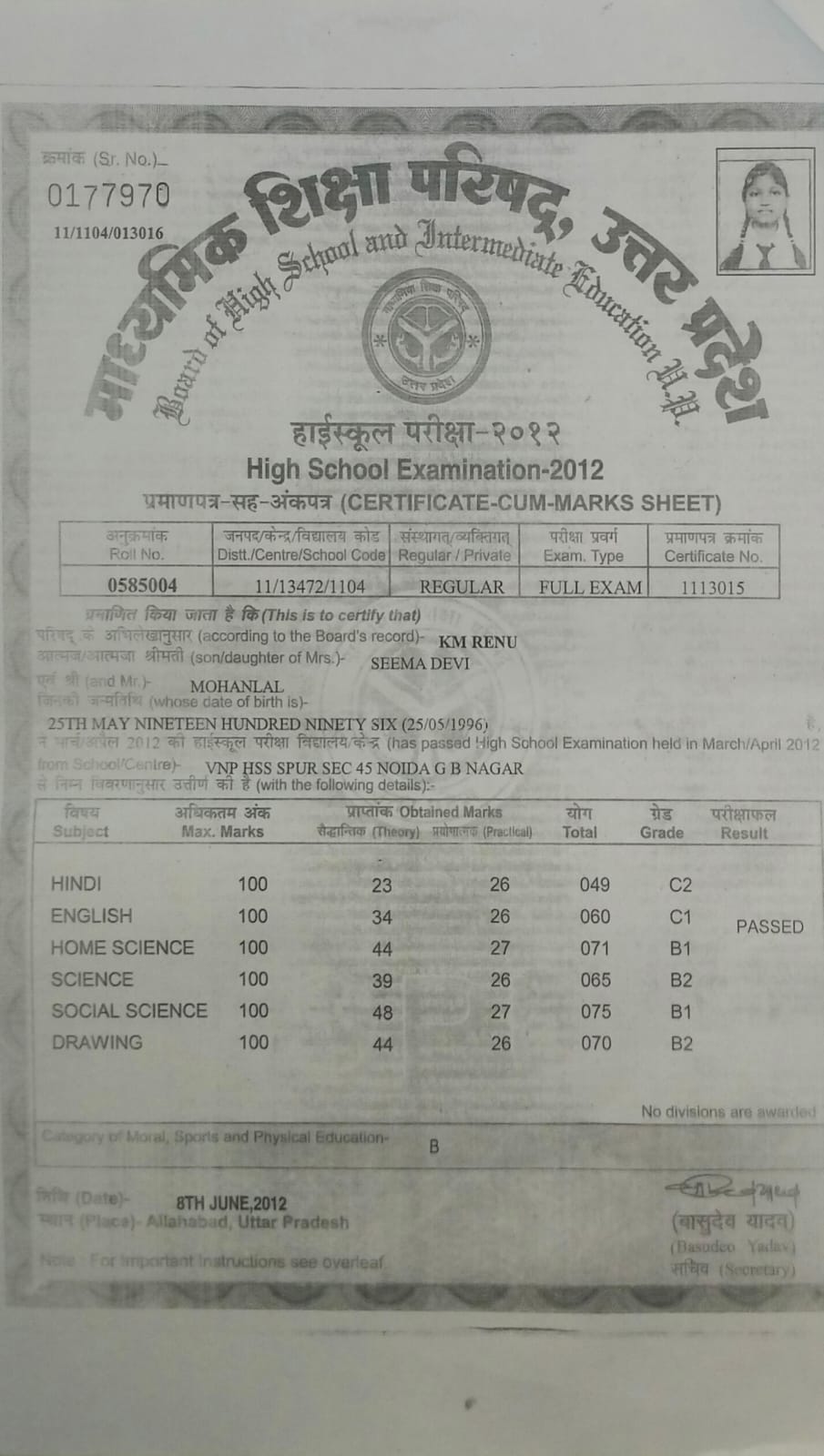 | Exam | Full Marks | Pass Marks | Marks Obtained |