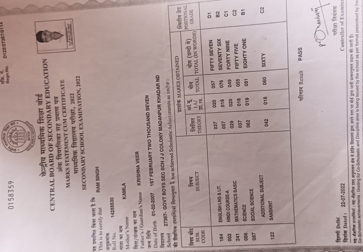 | Exam | Full Marks | Pass Marks | Marks Obtained |