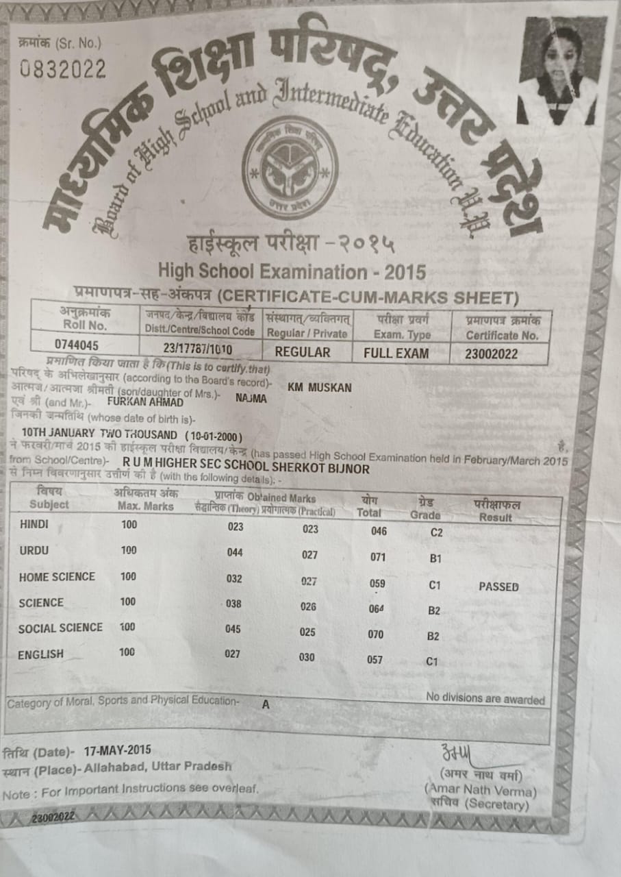 | Exam | Full Marks | Pass Marks | Marks Obtained |