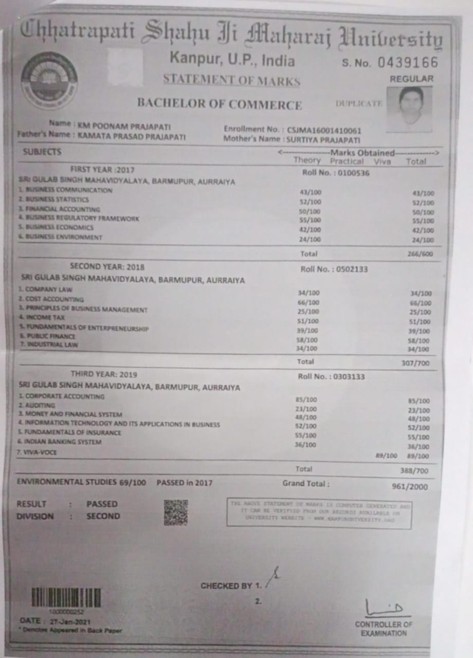 | Exam | Full Marks | Pass Marks | Marks Obtained |