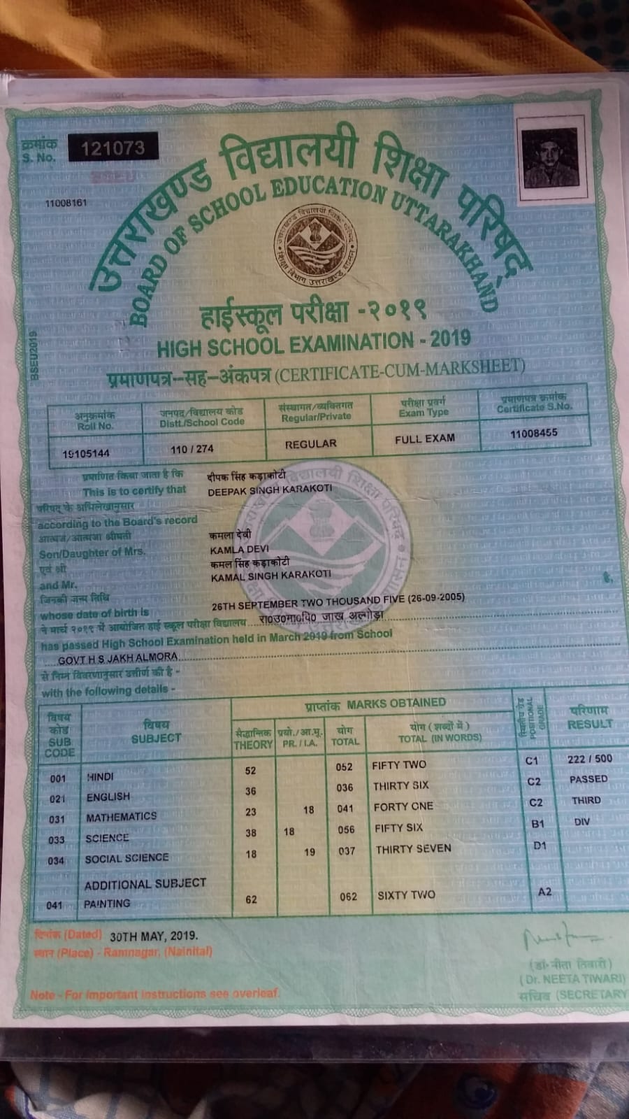 | Exam | Full Marks | Pass Marks | Marks Obtained |