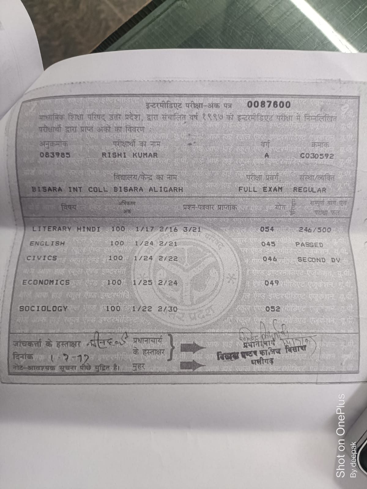 | Exam | Full Marks | Pass Marks | Marks Obtained |