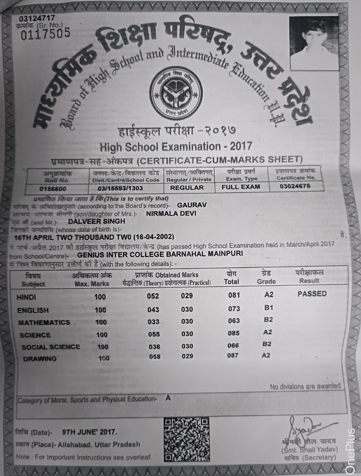 | Exam | Full Marks | Pass Marks | Marks Obtained |