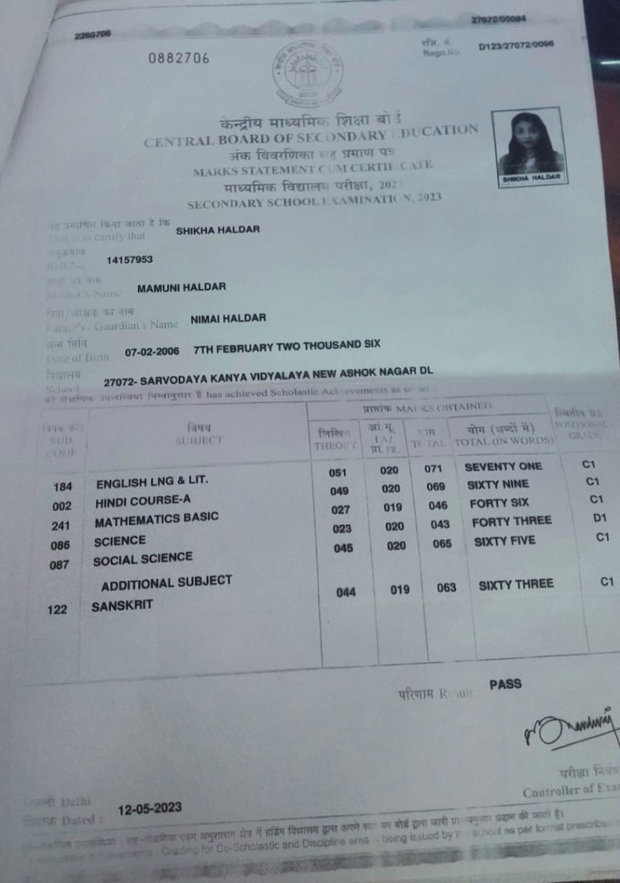 | Exam | Full Marks | Pass Marks | Marks Obtained |