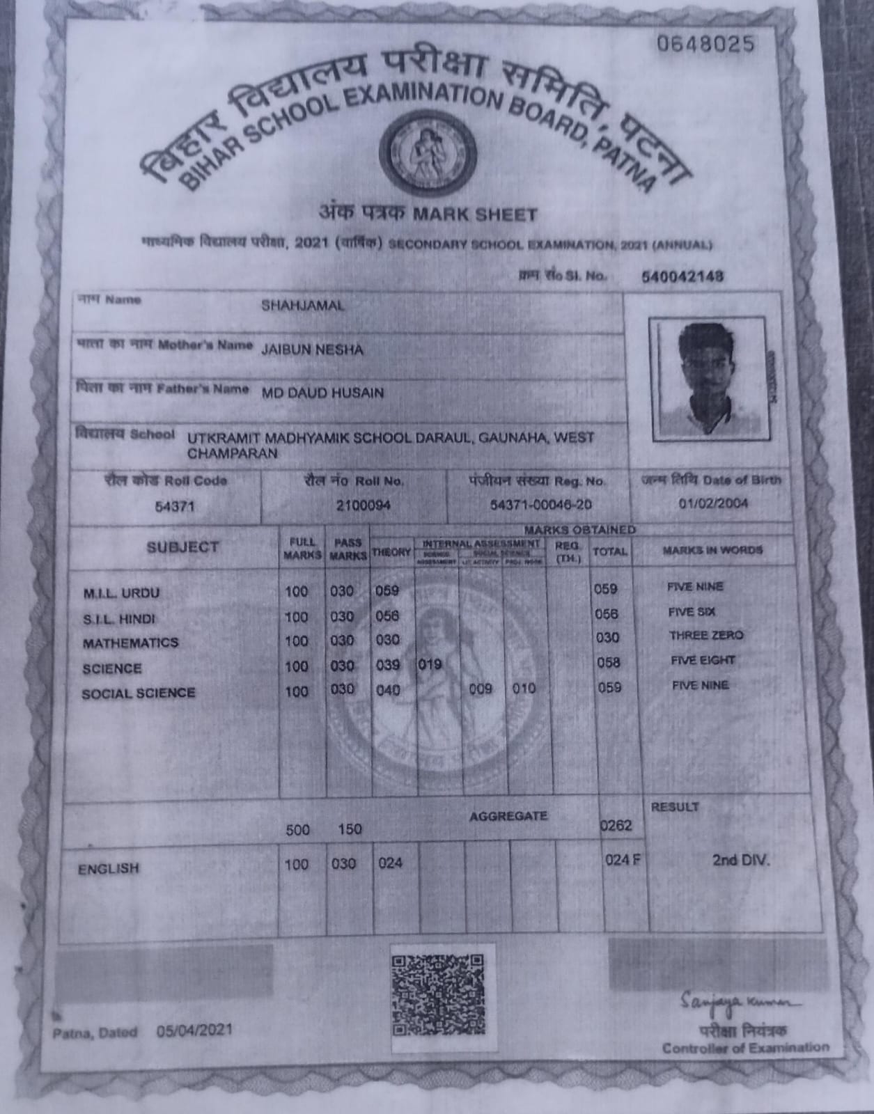 | Exam | Full Marks | Pass Marks | Marks Obtained |