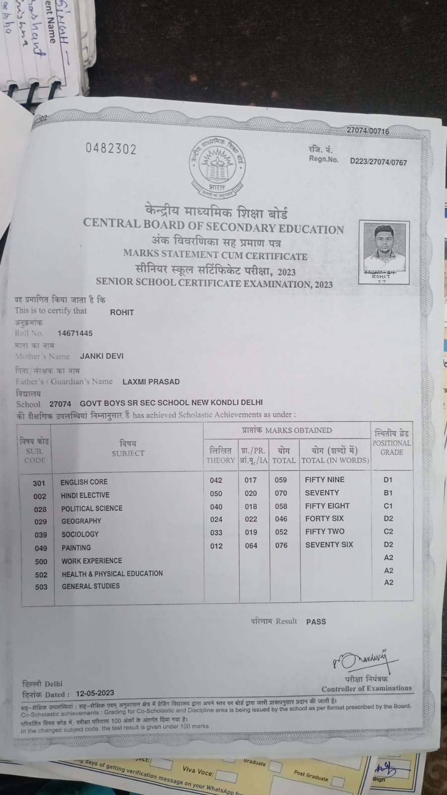 | Exam | Full Marks | Pass Marks | Marks Obtained |