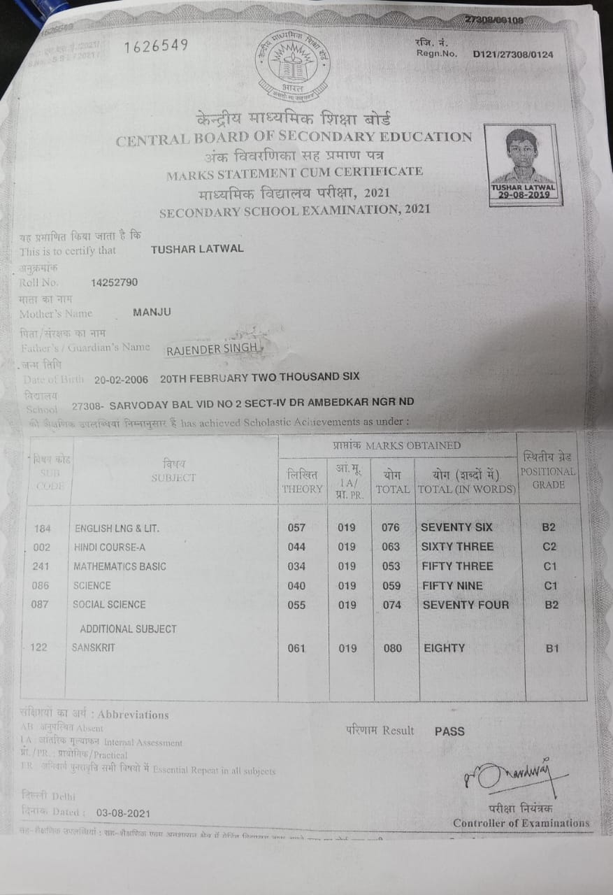 | Exam | Full Marks | Pass Marks | Marks Obtained |