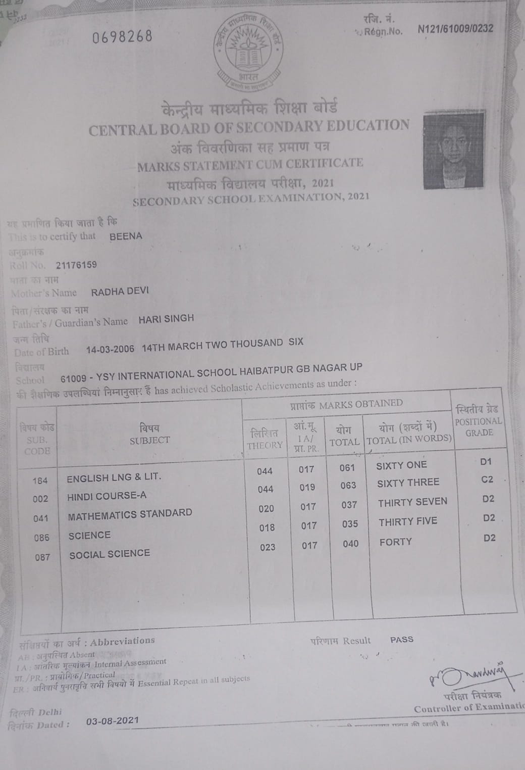 | Exam | Full Marks | Pass Marks | Marks Obtained |