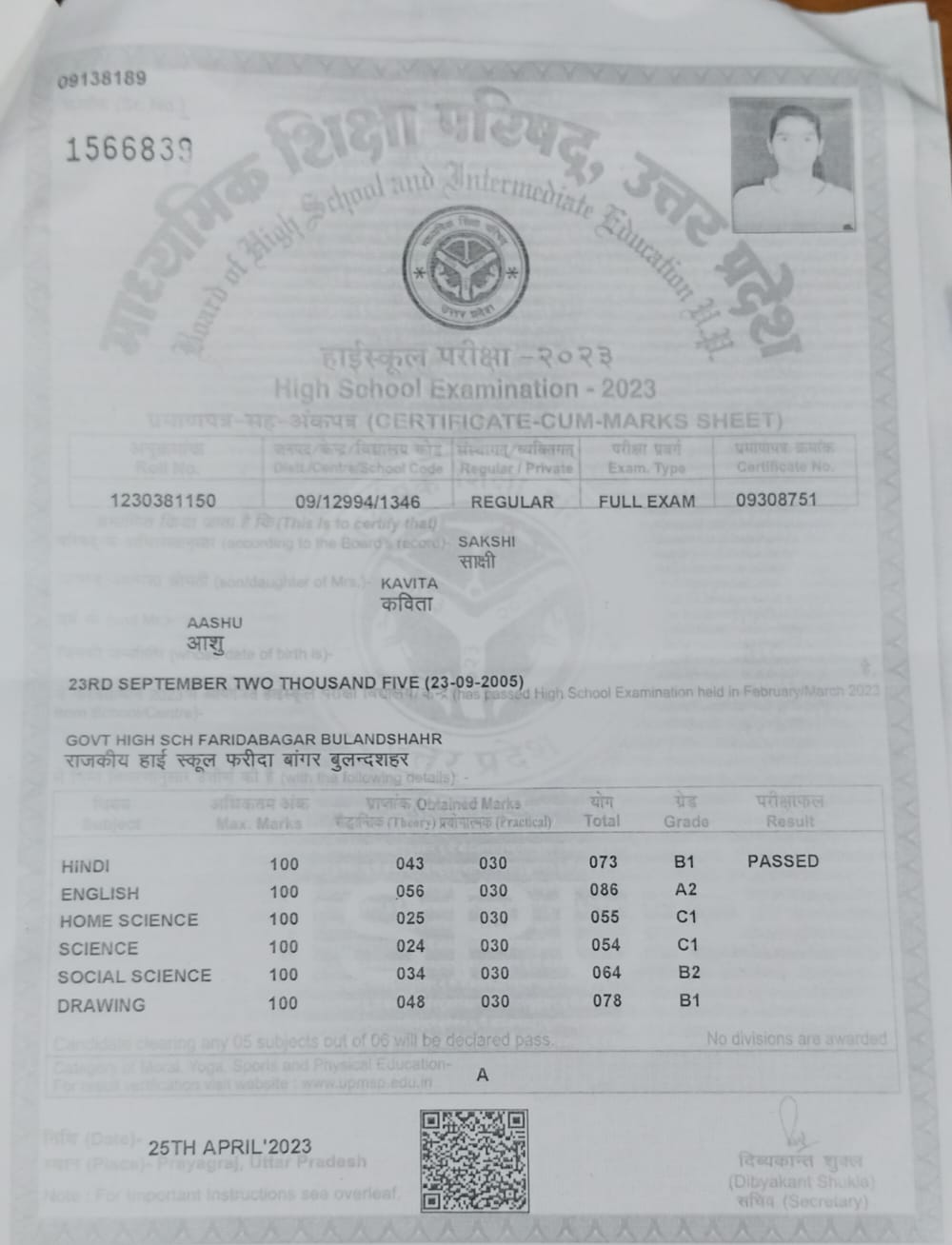 | Exam | Full Marks | Pass Marks | Marks Obtained |