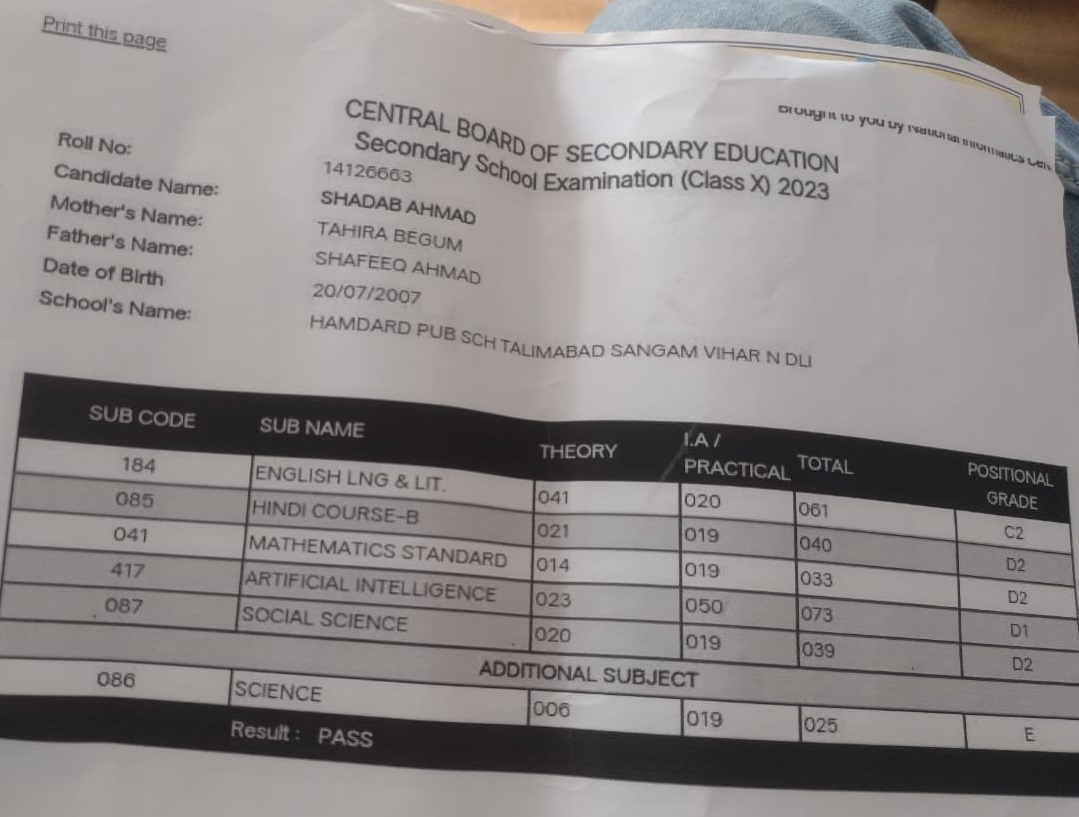 | Exam | Full Marks | Pass Marks | Marks Obtained |