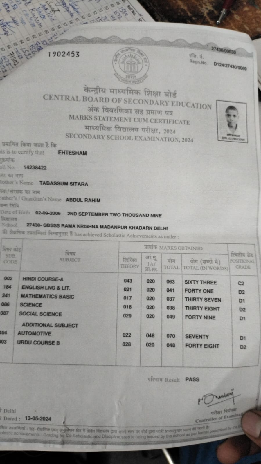 | Exam | Full Marks | Pass Marks | Marks Obtained |